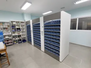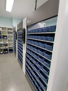 - Gestión de Referencias: El módulo de baldas gestiona hasta 324 referencias dispuestas en cajetines, posibilitando el tratamiento de envases, blisters, monodosis, tiras, bolsas y otros tipos de presentación.
