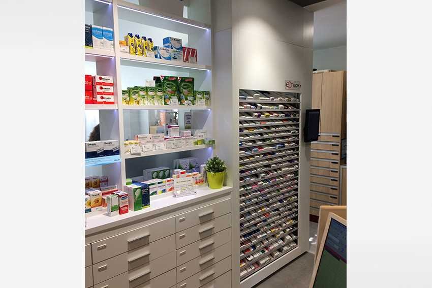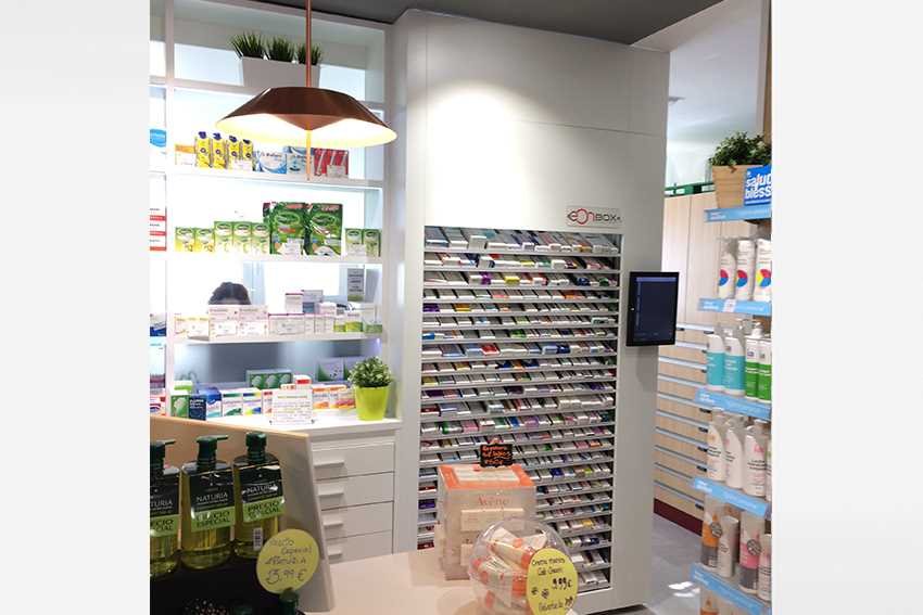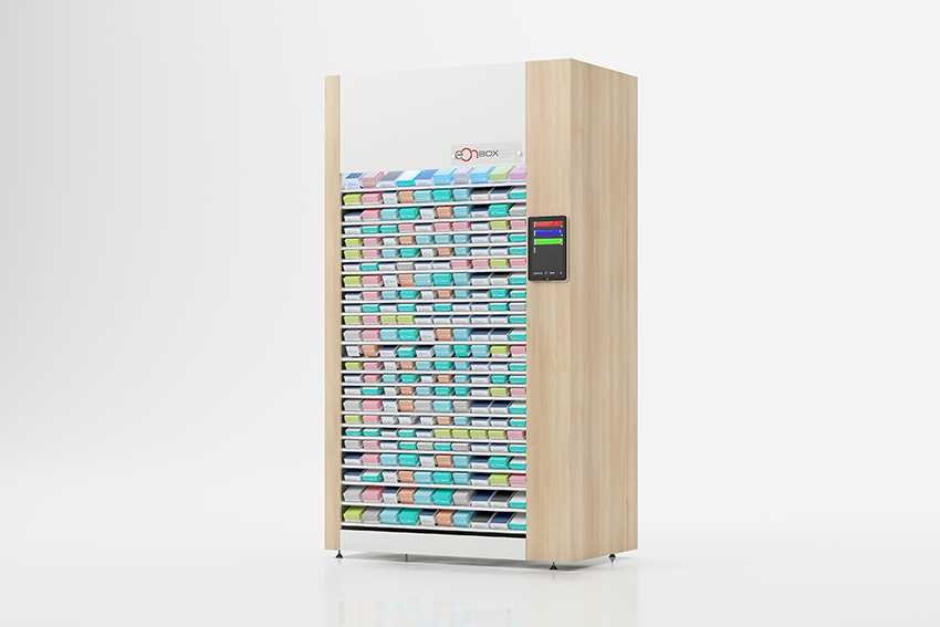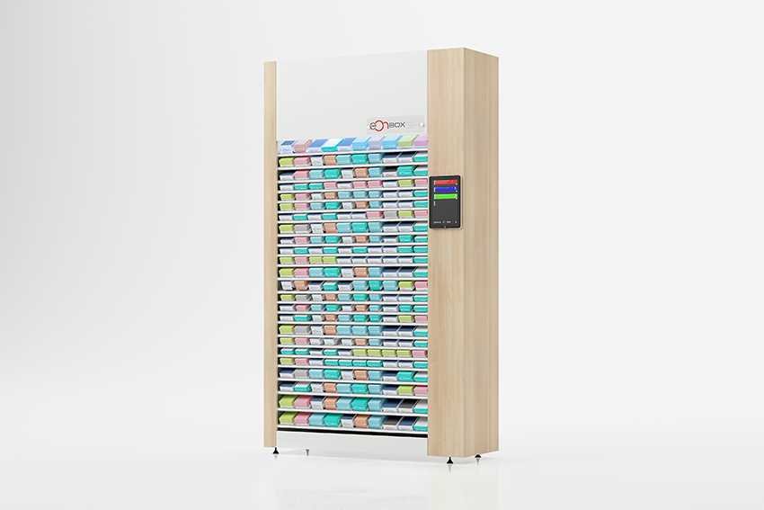 El Stock Light S4: Tiene 2,3 m (alto) x 1,3 m (ancho) pudiendo gestionar hasta 400 referencias con una capacidad máxima de 3.000 cajas almacenadas. Disponibles en dos profundidades, pudiendo ser de 50 cms y 70 cms, dependiendo del espacio físico de la Farmacia. Pantalla táctil delantera y trasera.